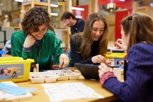 We hebben onderwijsprogramma’s waarmee je ook jouw groep enthousiast maakt en uitdaagt. Voor basisscholen en bso’s, middelbare scholen, mbo’s, hbo’s en universiteiten. En ook voor speciaal onderwijs. We bieden workshops waarin ze leren over onmisbare 21e eeuwse vaardigheden als computational thinking of juist old school bouwen. Jij kiest aan welke vaardigheden jouw klas of groep werkt. Ons veelzijdige programma doet de rest.